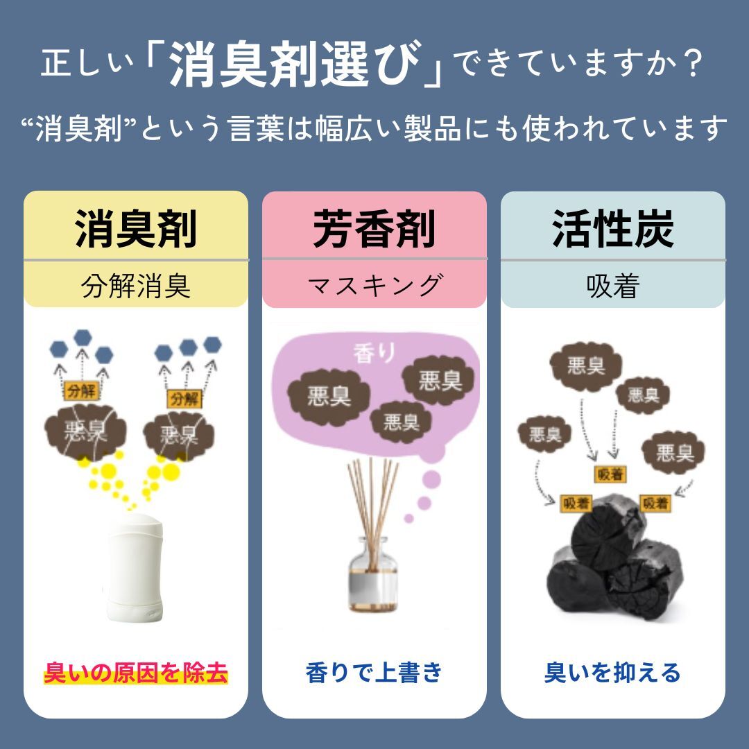 実はニオイ成分は気体となり空気中に拡散されてしまうため完全に消臭することはとても難しいんです!
